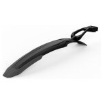 enduro-style front mudguard for 29″ mountain bikes; tool-free fitting; fit and remove in seconds with quick release; includes adapter (for steerer tubes with an inner diameter of 18 – 35 mm); matte-shiny finish; soft rubber details