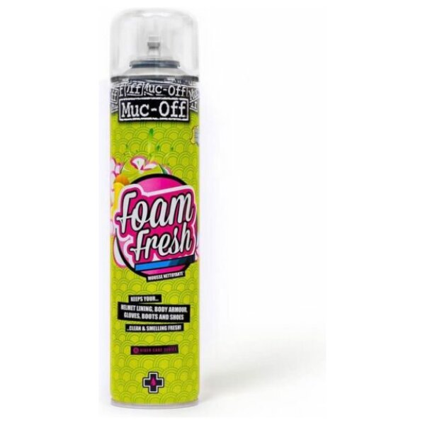 Το Muc-Off Foam Fresh είναι ένα πολύ αποτελεσματικό και χρηστικό καθαριστικό αφρού, ιδανικό για επένδυση κράνους ή οποιοδήποτε άλλο μαλακό υλικό έρχεται σε επαφή με τον αναβάτη. Το Foam Fresh δρα άμεσα και απομακρύνει τη βρωμιά από την επιφάνεια, αφήνοντας ένα φρέσκο άρωμα απο εσπεριδοειδή. Είναι ιδανικό για χρήση σε κράνη, γάντια, παπούτσια και προστατευτικά. Χαρακτηριστικά Χωρητικότητα: 400ml