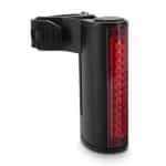 features: red safety light with COB LEDs; 10 lumens; integrated rechargeable lithium-polymer battery; 5 light modes; 2-stage battery indicator; splashproof; silicon strap fastening; includes Micro-USB charging cable
